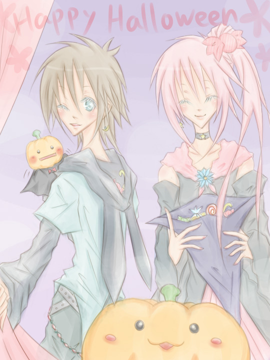 双子の兄妹がハロウィンを催す感じで描きました☆☆